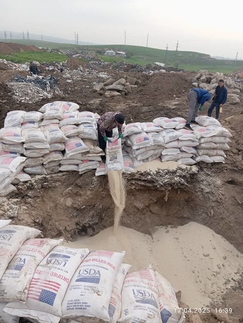 Ош облусунда АКШдан ташылып келген 18 тонна күрүч жараксыз деп табылып, таштандыга ыргытылды. Бул тууралуу Айыл чарба министрлиги билдирди.