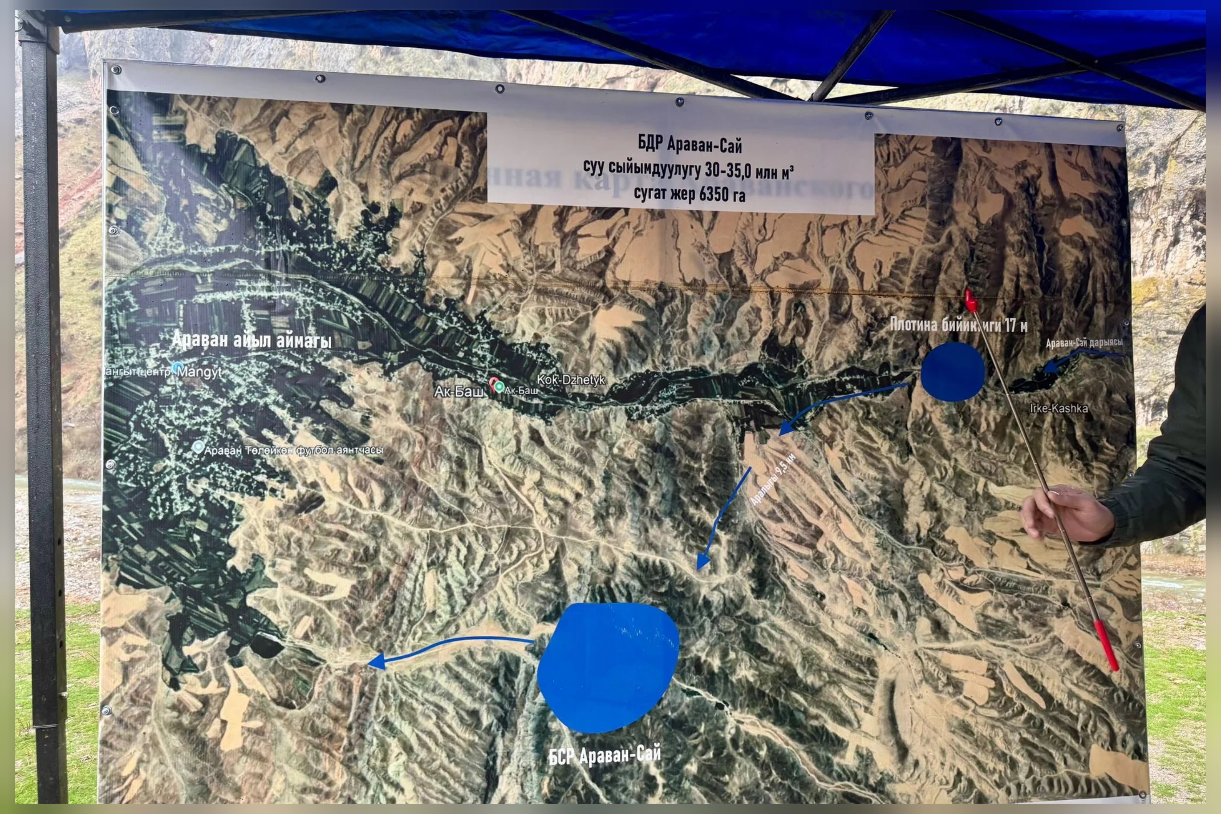 Ведомствонун маалыматында белгиленгендей, министр Эрлист Акунбеков суу сактагыч курула турган жер тилкесин көрүп, тиешелүү мамлекеттик органдарга долбоорду ишке ашырууну тездетүүнү тапшырды.