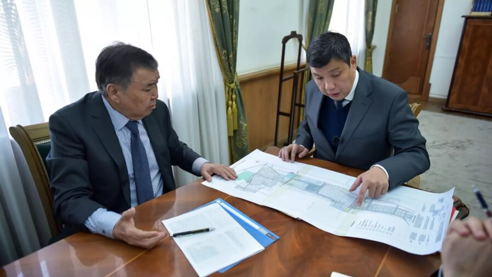 Бишкек шаарынын мэри Айбек Жунушалиев "Дордой" базарынын аймагындагы инфраструктураны жакшыртуу маселелерине байланыштуу Аскар Салымбековду кабыл алып, көйгөйдү талкуулады.