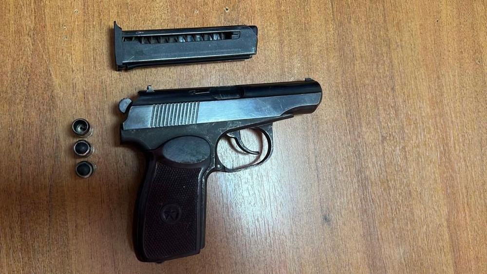 Кармалгандардын бири А.Р. милиция кызматкерлерине резина үлгүсүндөгү ПМР 45 үлгүсүндөгү травматикалык тапанчаны жана 3 даана гильзасын тапшырган.