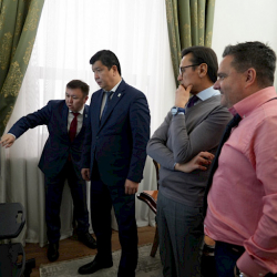 Бишкек мэри Айбек Жунушалиев асма жолдорду куруу боюнча эл аралык эксперт Стефано Николусси Росси жана «Bartholet Maschinenbau AG» компаниясынын Кыргызстандагы өкүлү Эдуард Кубатов менен жолугушту.