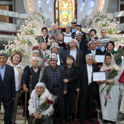 Иш-чара эл аралык карылар күнүн белгилөөнүн алдында уюштурулуп, Бакыт ордосунда бриллиант, изумруд жана алтын үйлөнүү тоюн белгилеп жаткан жубайлар маараке белгилешти.