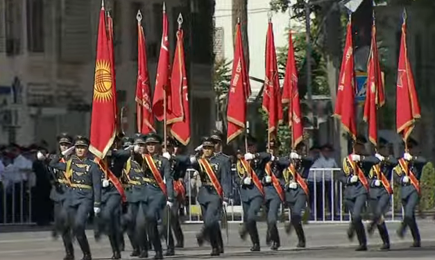 Учурда Бишкек гарнизонунун аскердик парады өтүүдө.