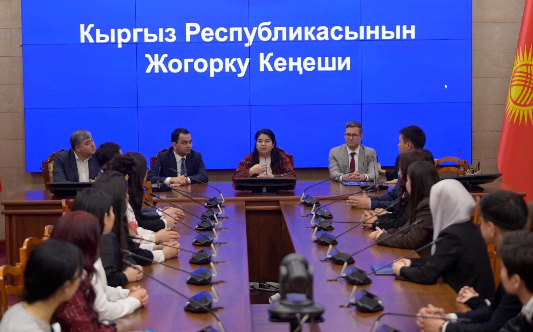Иш-чарага «Конрад Аденауэр» Фондунун Борбор Азиядагы өкүлү Андре Алгермиссен, Өзбекстан жаштар парламентинин өкүлү Собитов Отабекхужа Юлдош Угли жана Аликулов Ашраф катышты. Жогорку Кеңештин ишмердиги менен таанышууда кыргыз парламентинини түзүмү, мыйзам чыгаруу процесси, комитеттердин ишмердүүлүгү жана депутаттардын ыйгарым укуктары тууралуу кеңири маалымат берилди.