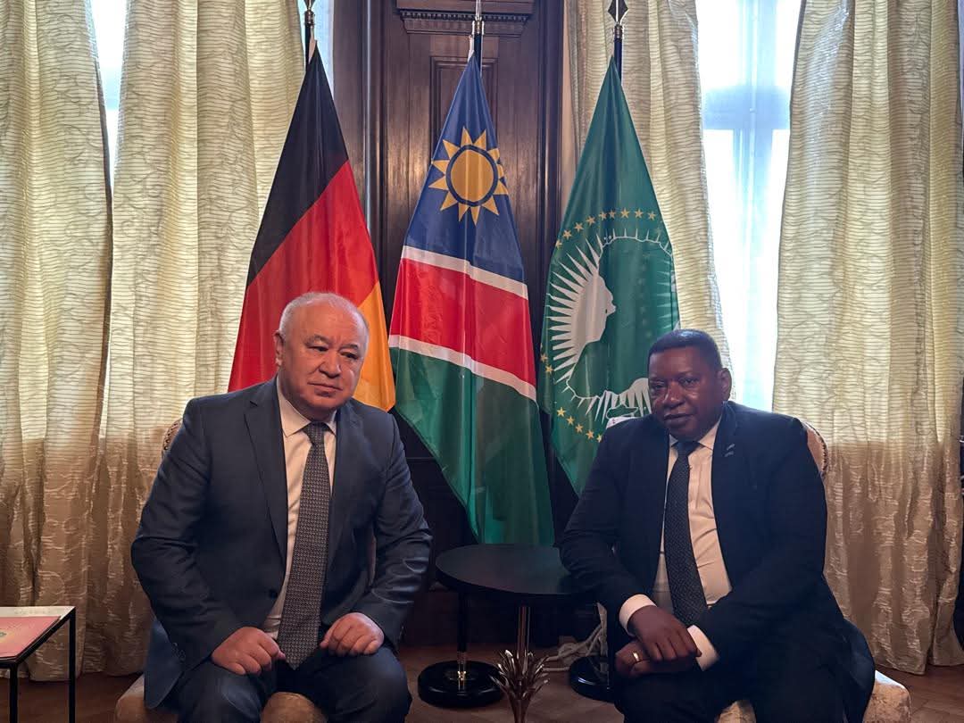 2026-жылдын 23-апрелинде Берлин шаарында Кыргыз Республикасынын Германия Федеративдүү Республикасындагы Атайын жана Ыйгарым укуктуу Элчиси Өмүрбек Текебаев Намибия Республикасынын Германия Федеративдүү Республикасындагы Атайын жана Ыйгарым укуктуу Элчиси доктор Джеробеам Шааника менен жолугушту.