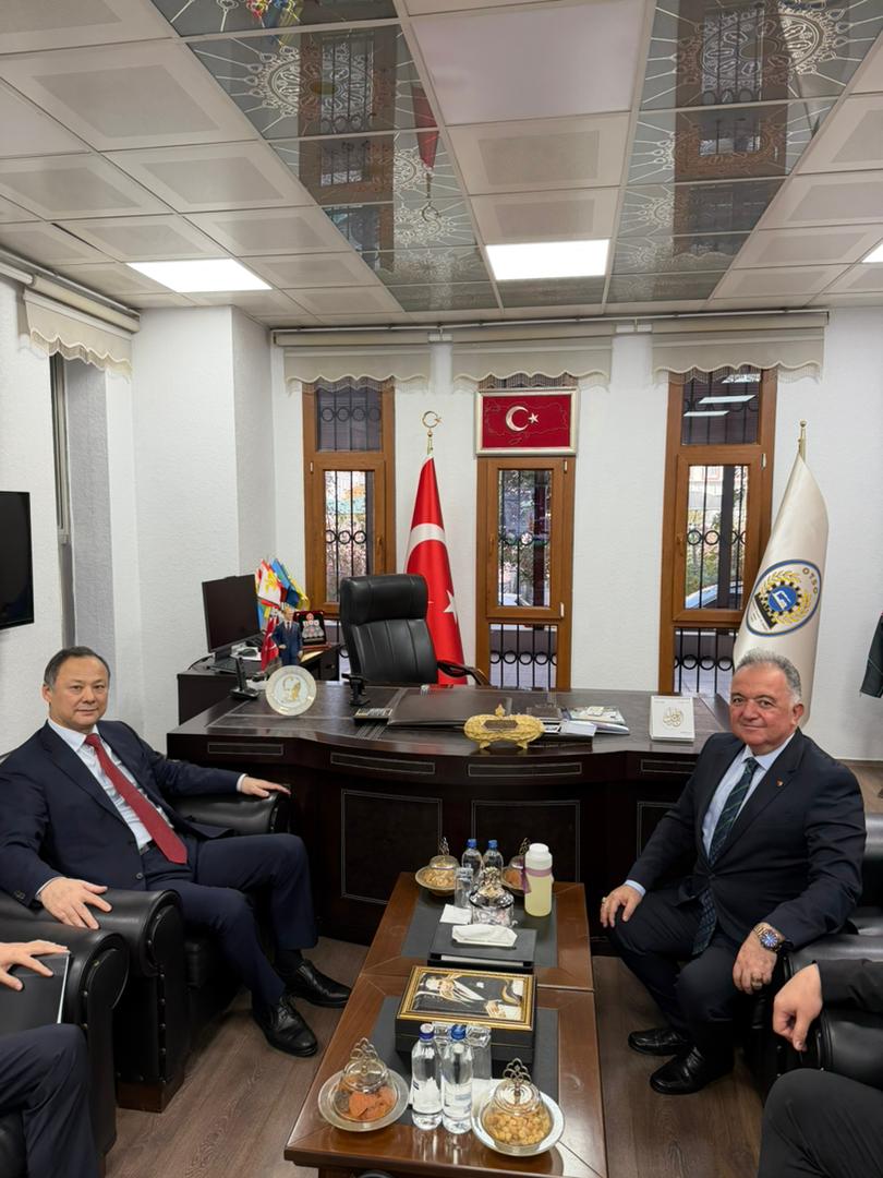 2025-жылдын 19-декабрында Османие провинциясына жасалган иш сапарынын алкагында Кыргыз Республикасынын Түркия Республикасындагы Элчиси Руслан Казакбаев Османие провинциясынын Соода-өнөр жай палатасынын төрагасы Деврим Мурат Аксой менен жолугушуу өткөрдү.