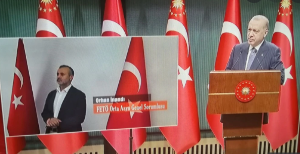 "Атайын кызматыбыздын өкүлдөрү Борбор Азиянын ФЕТО боюнча жооптусу Орхан Инандыны өлкөбүзгө алып келип, сот тармагына өткөрүп берди. Кийин бул киши ФЕТО кыймылынын жогорку башкаруучуларынын катарына кирип, ФЕТОнун кир акчаларын Борбор Азияга жумшаган. Башка террордук уюмдар менен күрөшкөндөй эле ФЕТО менен да күрөштү улантабыз", - деди Эрдоган.