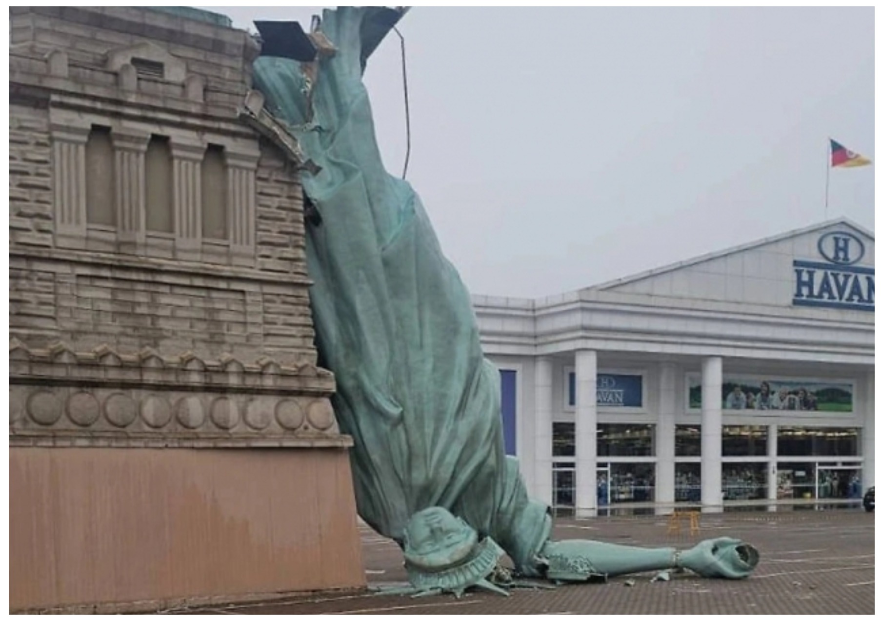 Кечээ, 15-декабрда, Бразилиянын Гуайба шаарындагы Эркиндик статуясынын 35 метрлик көчүрмөсүн катуу бороон кулатты. Айкел Гаванадагы дүкөндүн алдына орнотулган. Бул тууралуу G1 басылмасы билдирди.