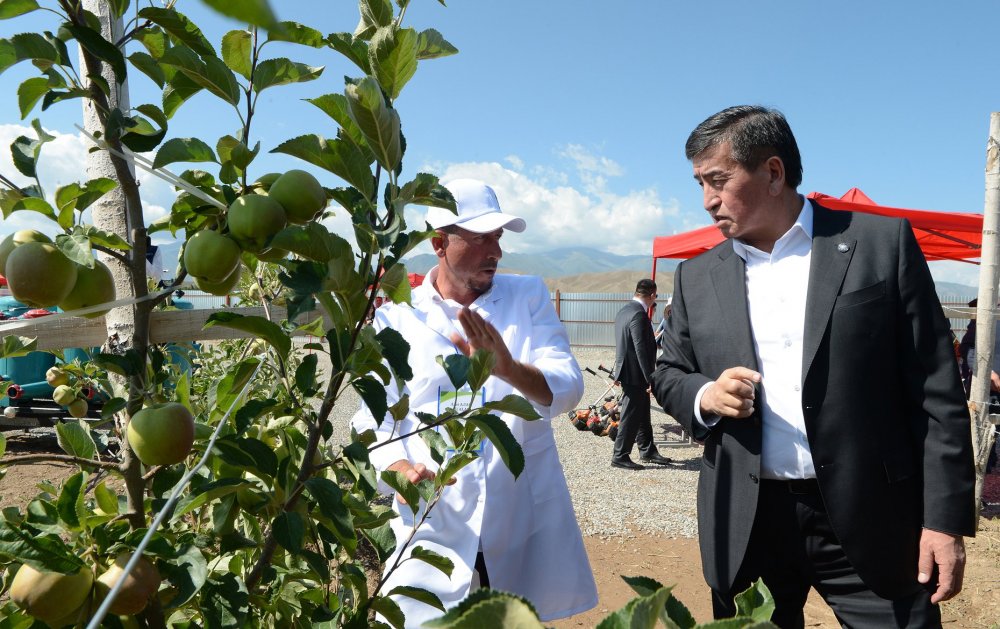 Кыргыз Республикасынын Президенти Сооронбай Жээнбеков бүгүн, 12-июлда Талас облусуна жумушчу сапарынын алкагында Бакай-Ата районундагы «Азра жемиштери» жоопкерчилиги чектелген коомго барды. Мамлекет башчысы 2014-жылы тигилген алма багын көрдү.