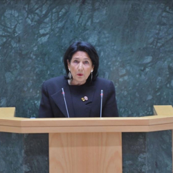 Ал, борбор шаар Тбилисидеги президенттик сарайда билдирүү жасап, 5 пайыздык босогодон өткөн оппозициялык «Грузияны сактап калуу үчүн биримдиги», «Өзгөртүү үчүн коалиция» жана «Күчтүү Грузия» шайлоо блогунун лидерлери колдогон Зурабишвили өз өлкөсүндө өткөн парламенттик шайлоого баа берди.