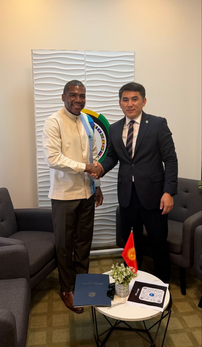 Министрдин орун басары К.Турсункулов Кыргызстан менен Кариб бассейни өлкөлөрүнүн ортосундагы мамилелерди мындан ары өнүктүрүүнүн мүмкүнчүлүктөрүн талкуулап, алдыдагы ири иш-чаралар — ШКУ саммити жана Дүйнөлүк көчмөндөр оюндары тууралуу маалымат берди. Тараптар эки тараптуу форматта жана эл аралык уюмдардын алкагында кызматташууну мындан ары да өнүктүрүүгө даяр экендигин ырасташты.