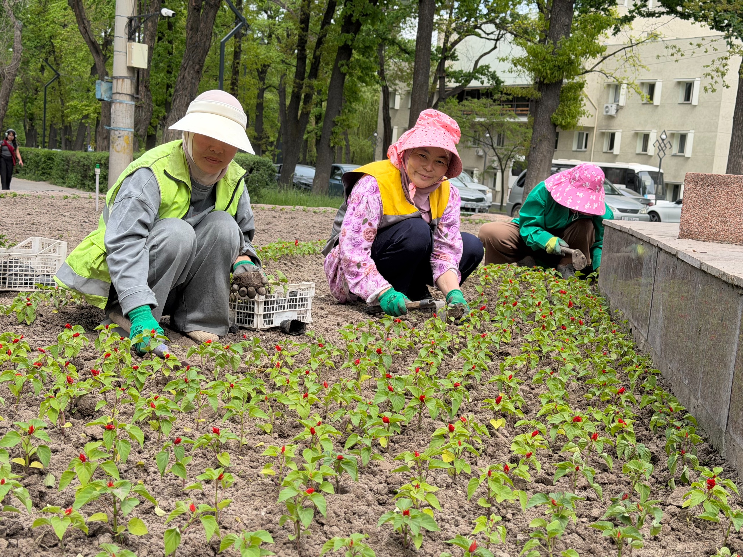 Гүл композициялары борбордук көчөлөрдү, парктарды, скверлерди жана шаардагы бардык гүлзарларды кооздоп, калаага көрктүү жана заманбап көрүнүш берет. Иштер шаардын төрт административдик районунда бир убакта башталып, адистер коомдук жайларды көрктөндүрүү иштерин активдүү жүргүзүп жатышат.