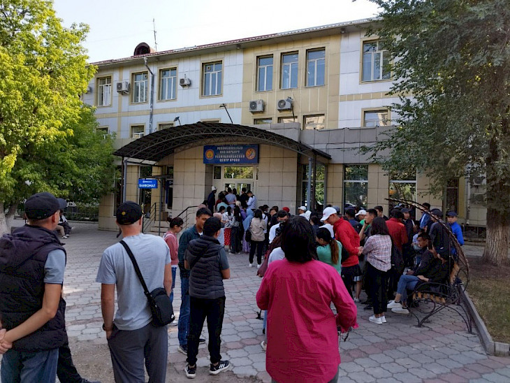 Бишкекте Республикалык кан борборунда кыргыз-тажик чек арасында жабыркагандарга кан тапшырам дегендердин узун кезеги пайда болду.