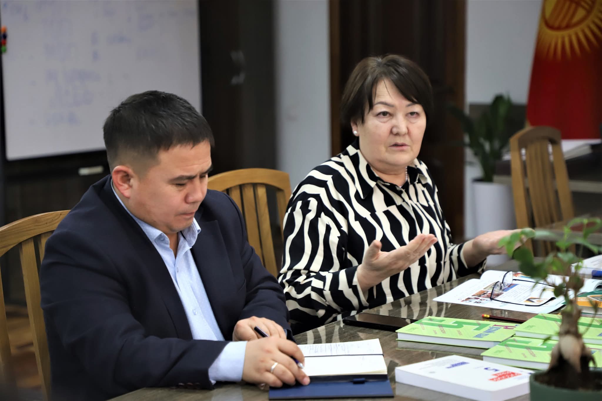 Жыйынга министрдин орун басарлары Надира Джусупбекова жана Лира Самыкбаева, ошондой эле Мектептик билим берүү башкармалыгынын, Педагогикалык кызматкерлердин квалификациясын жогорулатуу жана кайра даярдоо республикалык институтунун жана Билим берүүнүн сапатын өнүктүрүү департаментинин өкүлдөрү катышты.