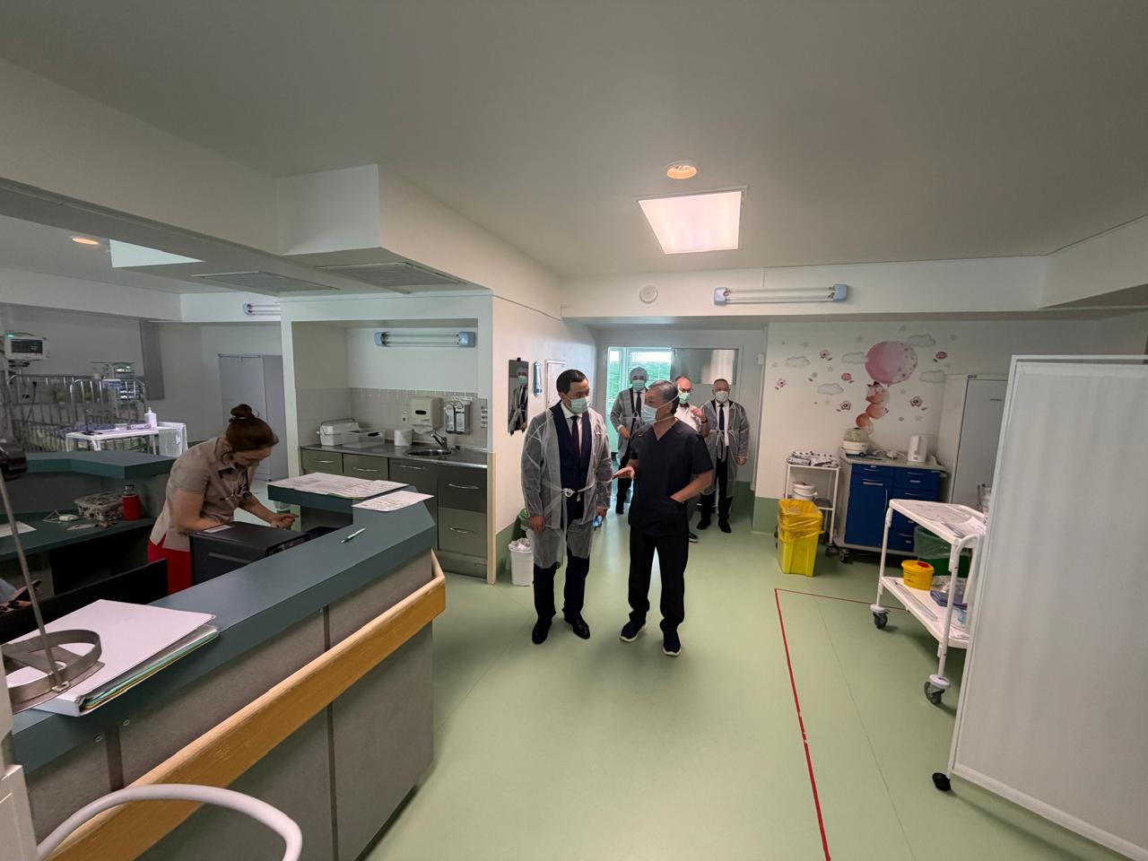 Университеттин клиникалык бөлүмдөрүндө делегация неврология борборуна барып, телемедициналык технологияларды колдонуу, алыстан консультация берүү жана бейтаптарды коштоп жүрүү мүмкүнчүлүктөрү менен таанышты. Ошондой эле Da Vinci роботтоштурулган хирургиялык системасы аркылуу жүргүзүлгөн операция реалдуу убакыт режиминде көрсөтүлүп, чоң кызыгууну жаратты. Министр телемедицина жана робот-ассистенттик дарылоо ыкмаларын киргизүү медициналык жардамдын сапатын жана жеткиликтүүлүгүн жогорулатууда өзгөчө мааниге ээ экенин белгиледи.