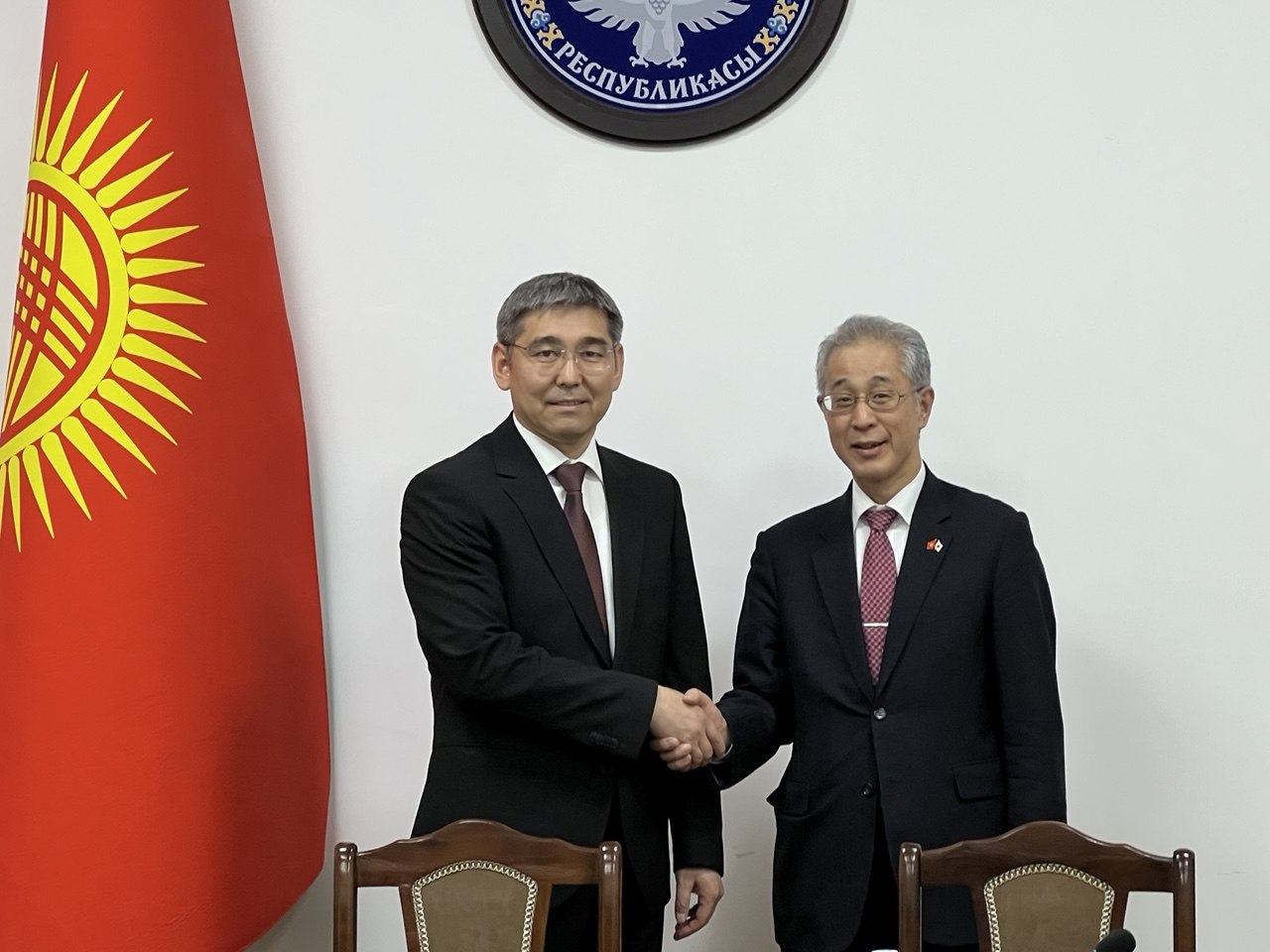 Бүгүн, 2026-жылдын 16-апрелинде Кыргыз Республикасынын Саламаттык сактоо министрлигинде саламаттык сактоо министри Дамир Осмонов Япониянын Кыргыз Республикасындагы Атайын жана Ыйгарым укуктуу Элчиси Хирано Рюити жана Кыргыз Республикасындагы JICA уюмунун башкы өкүлү Нишигата Котаро менен жолугушуу өткөрдү. Жолугушууга ошондой эле Кыргыз Республикасынын Жогорку Кеңешинин депутаты Таалайбек Масабиров катышты.