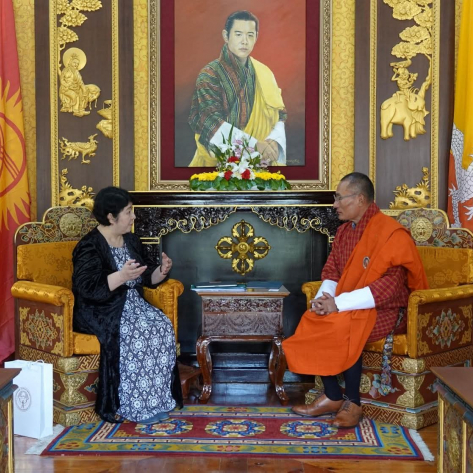 21-апрелде Динара Кемелова Бутан Падышалыгынын Премьер-министри Церинг Тобгай менен жолугушту. Жолугушуунун жүрүшүндө Мамлекет башчысынын Атайын өкүлү Бутандын Премьер-министри Церинг Тобгайга Президент Садыр Жапаровдун кайрылуусун тапшырды. Анда эки жактуу жана көп тараптуу кызматташууну өнүктүрүүгө кызыкдарлык ырасталып, ошондой эле “Бишкек+25” экинчи Глобалдык тоо саммитине катышууга чакыруу камтылган.