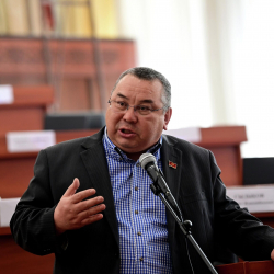 "Эмне үчүн ал жерди мамлекет өзү иштетпейт? Фирманын ээси энесине каттатып иштетип жатат. Анысы аз келгенсип, кызыл китеби бар элдерди какшатып, жанындагы 7 гектарды алып алган. Атын атабай эле коёюн, бир адам бар экен ит каап алса да Бишкеке чалат экен, мени ит каап алды, токтоткула деп. Эртең анын баарына мыйзам алдында жооп берет. Ал Бишкектеги үлкөн-үлкөн адамдардын атын атап жатыптыр. Мындай "беспредел" болбойт, биз буга жол бербейбиз. Ошон үчүн кысчу жерин кысып, элдин канын ичпей мыйзам чегинде ишти алып барсын. Алган 5 гектар жерди кайра мамлекетке кайтарып берсин. Ал жерден чатак чыгат деп, 3-4 айдан бери эскертип келе жатабыз укпай койдуңар. Эл араң эле турат", - деди Түлөбаев.