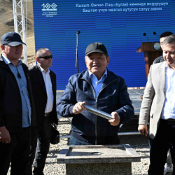 Министрлер кабинетинин төрагасы Акылбек Жапаров Ысык-Көл облусуна болгон жумушчу сапарынын алкагында маанилүү иш-чарага – Таш-Булак участогунда Кыргызстандагы эң ири титаномагнетит кени – Кызыл-Омполдун өздөштүрүлүшүнүн башталышын билдирген мезгил кутусун орнотууга катышты.
