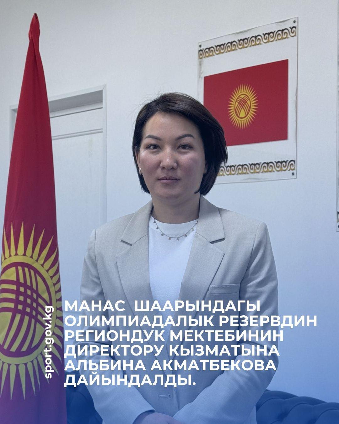 Кыргыз Республикасынын Министрлер кабинетине караштуу Дене тарбия жана спорт мамлекеттик агенттигинин алдындагы Жалал- Абад облусунун Манас шаарындагы Олимпиадалык резервдин региондук мектебинин директору кызматына Альбина Акматбекова дайындалды.