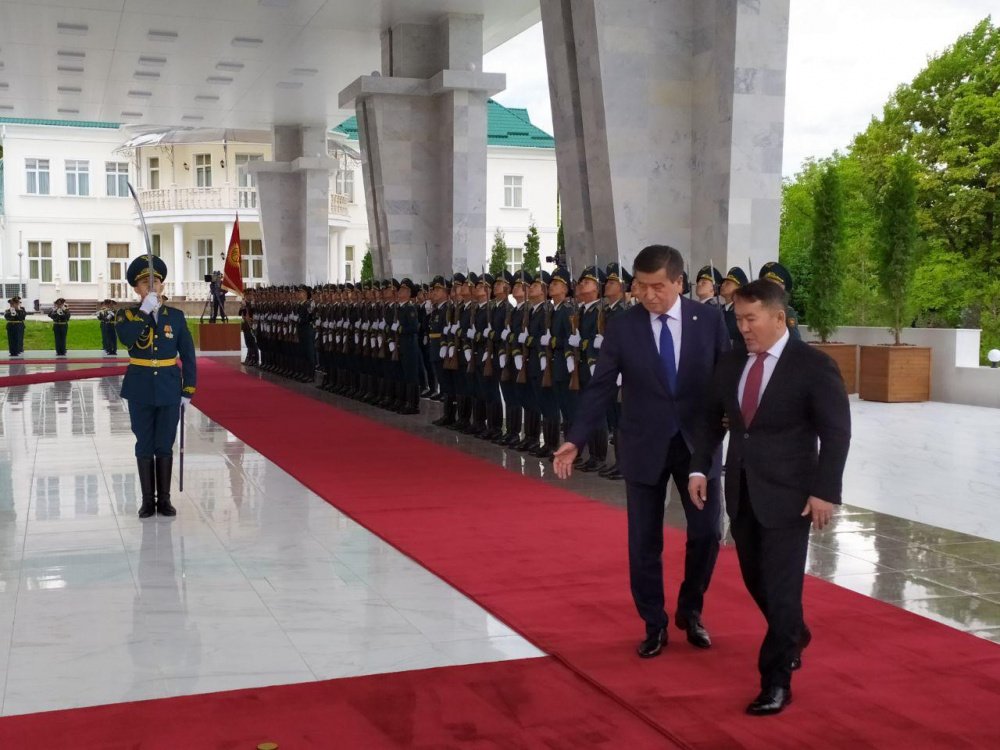 Мамлекет башчылары Ардактуу кароолду кыдырып чыгышты жана расмий делегациялардын мүчөлөрү тааныштырылды. Андан соң учурашуу аземинен кийин Кыргызстандын жана Монголиянын Президенттери кеңири курамдагы жолугушууга багыт алышты.