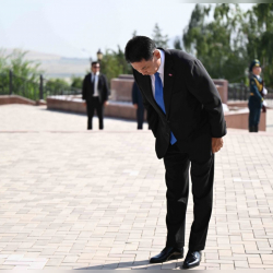 Моңголиянын президенти Министрлер кабинетинин төрагасы Адылбек Касымалиевдин коштоосунда 1916-жылдагы каргашалуу окуялардын курмандыктарына арналган мемориалга гүлчамбар койгон.