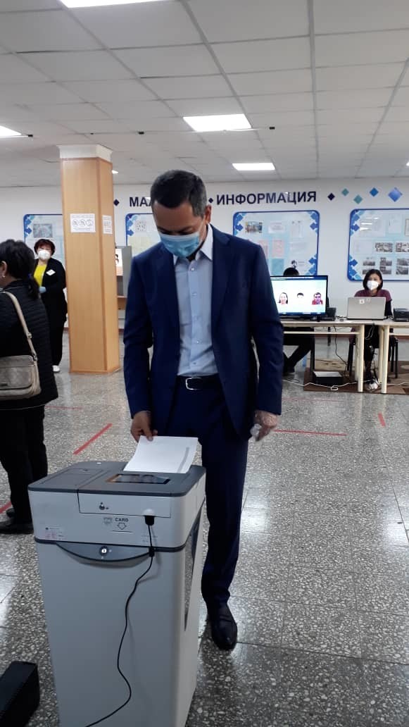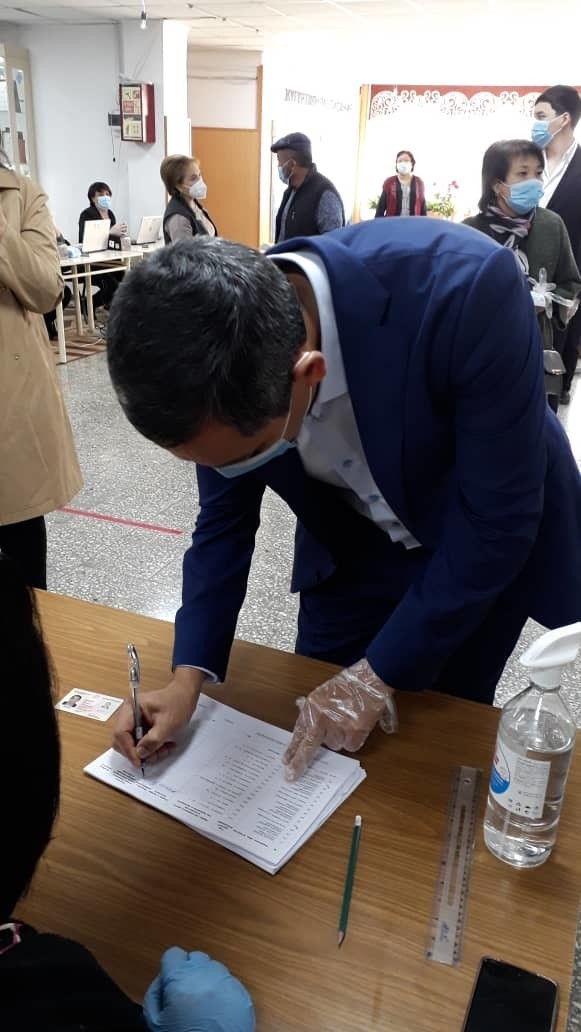 «Республика» партиясынын мурдагы лидери Өмүрбек Бабанов Бишкек шаарындагы №70 мектепте жайгашкан №1216 шайлоо участогунда добуш берди.