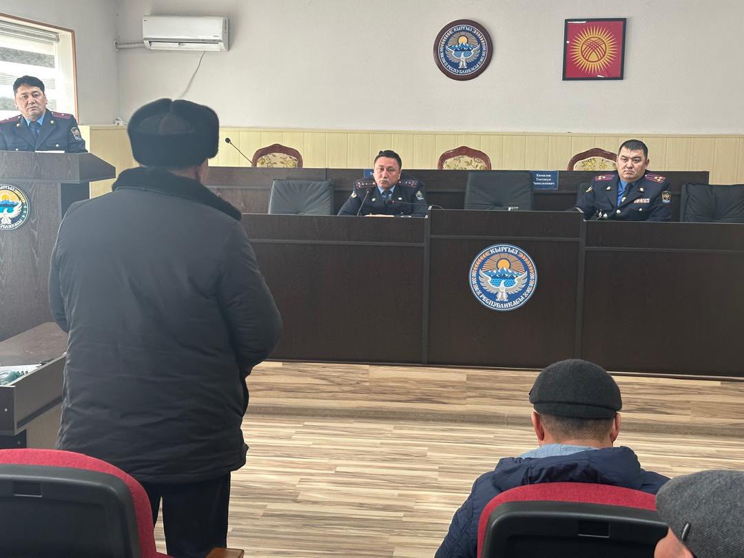 Жыйынга Алай райондук ички иштер бөлүмүнүн башчысы, милициянын полковниги Чынгыз Иманалиев, райондук ЖКККБнын кызматкерлери, ошондой эле айыл өкмөт башчылары, алардын орун басарлары жана айыл башчылары катышты.