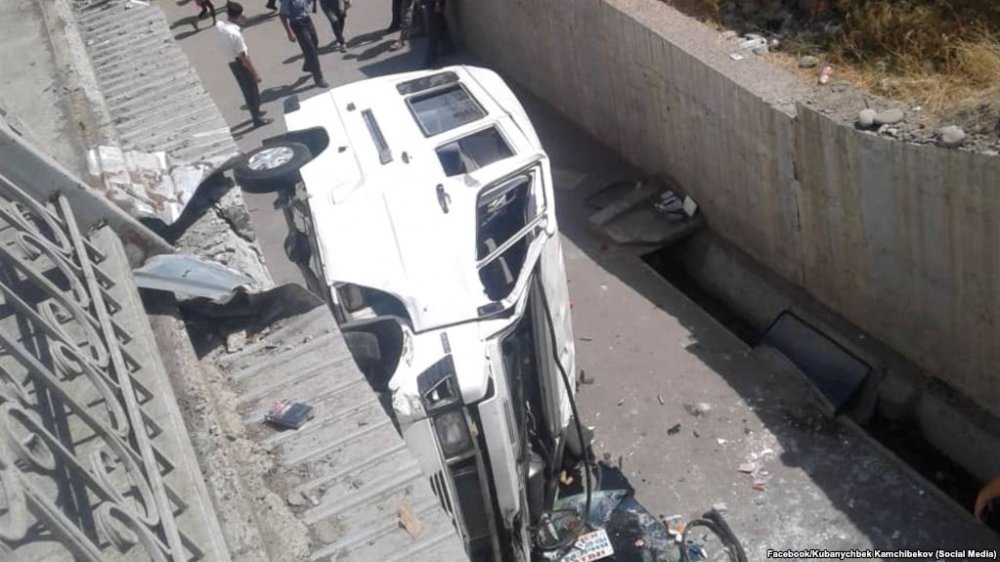 Ош шаарында көпүрөдөн кулаган кичи автобустагы бир жүргүнчүнүн абалы оор. 48 жаштагы аялдын буту жана колу сынганын, учурда оорукананын жандандыруу бөлүмүндө жатканын Ош шаардык ички иштер башкармалыгынын басма сөз кызматы билдирди.