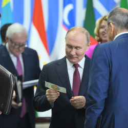 Россиянын президенти Владимир Путин Казандагы саммитте символикалык "БРИКС купюрасы" менен таанышты. Бул тууралуу РИА Новости маалымдады.