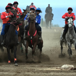 Президент Садыр Жапаров менен Түркмөнстандын Халк Маслахатынын төрагасы Гурбангулы Бердымухамедовго бүгүн, 23-апрелде Ысык-Көл районунун Бактуу-Долоноту айылындагы ипподромдо кыргыздын улуттук ат оюндары – «Жорго салыш» жана «Көк бөрү»тартууланды.