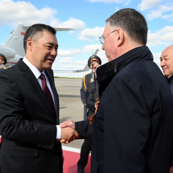 Президент Садыр Жапаровду Россия Федерациясынын Тышкы иштер министринин орун басары Александр Панкин тосуп алды.