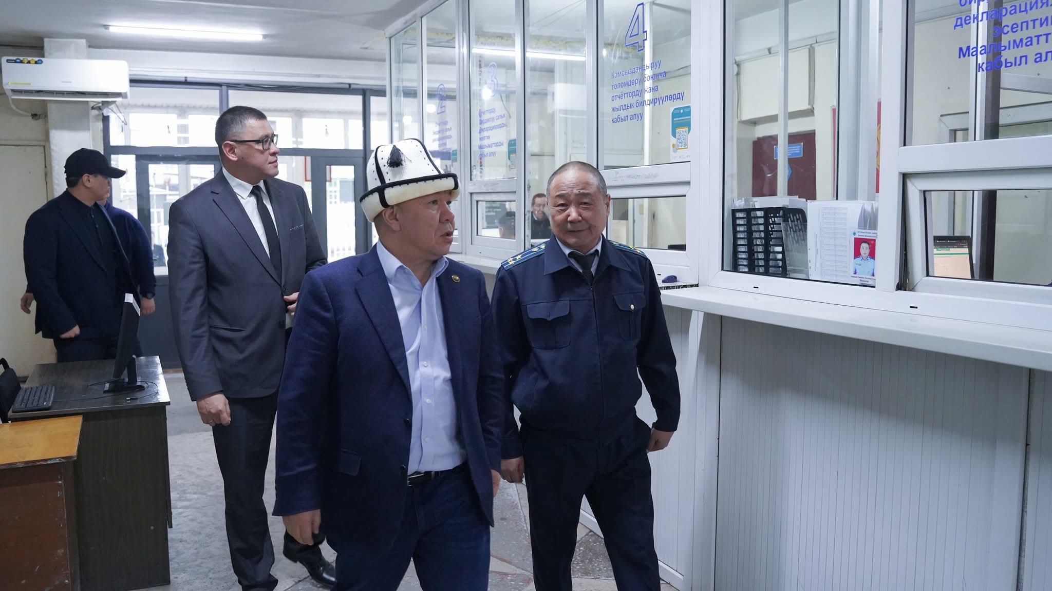 Мамлекеттик салык кызматынын төрагасы Алмамбет Шыкмаматов аймактарга иш сапарынын алкагында Баткен, Ош облусундагы ведомствонун аймактык башкармалыктарын кыдырды.