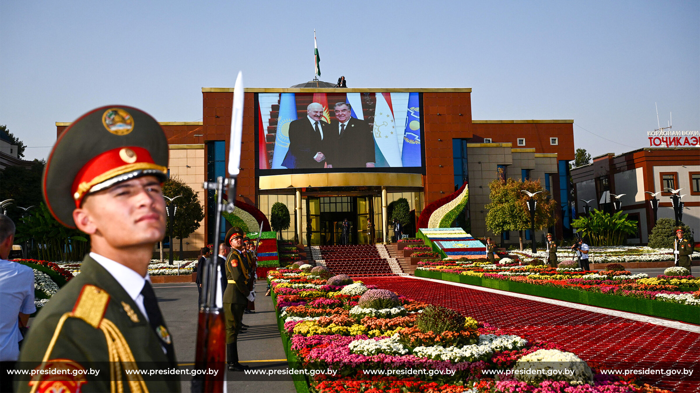 Дүйшөмбү аэропортунан Александр Лукашенкону Тажикстандын премьер-министри Кохир Расулзода, Беларустун тышкы иштер министри Максим Рыженков, Беларустун Тажикстандагы элчиси Виктор Денисенко жана башка расмий адамдар тосуп алышты.