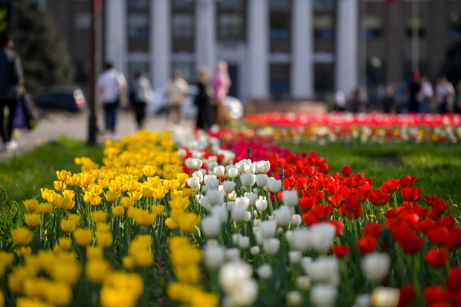Бул жазда борбор шаарыбыз чыныгы гүлдөгөн оазизке айланды – шаардагы сейил бактар менен гүл бакчаларды 230 миңден ашуун жоогазын кооздоп турат.