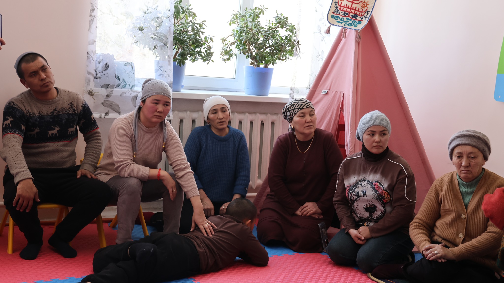 Нарында Кыргыз Республикасынын эмгек, социалдык камсыздоо жана миграция министри Канат Сагынбаев «Мейкин» реабилитациялык борборунда кызмат алып жаткан майыптуулугу бар балдардын ата-энелери менен жолугушту.
