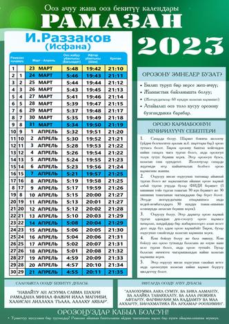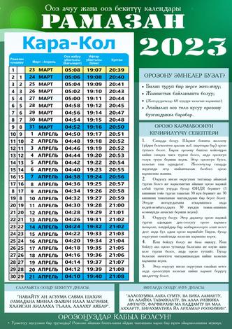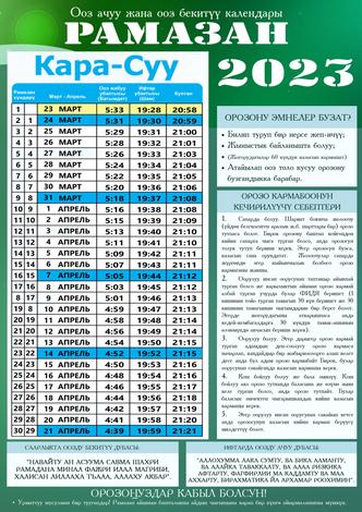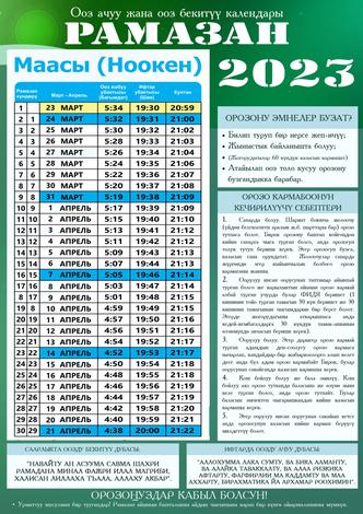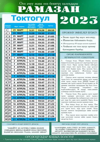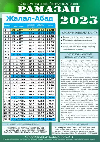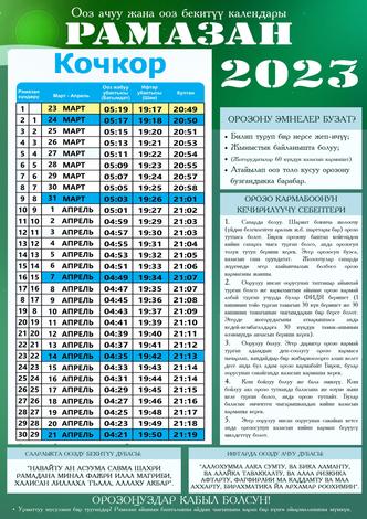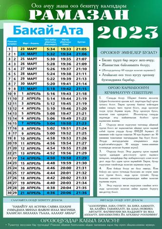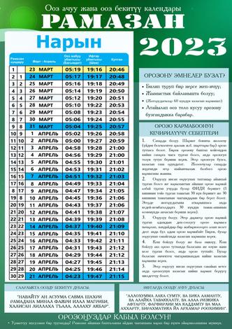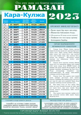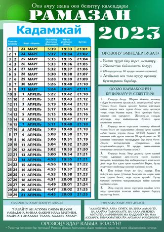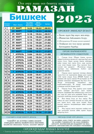 2023-жылдагы Орозо айы 23-мартта башталат. 22-мартта өлкө аймагындагы бардык мечиттерде таравих намазы окулат.