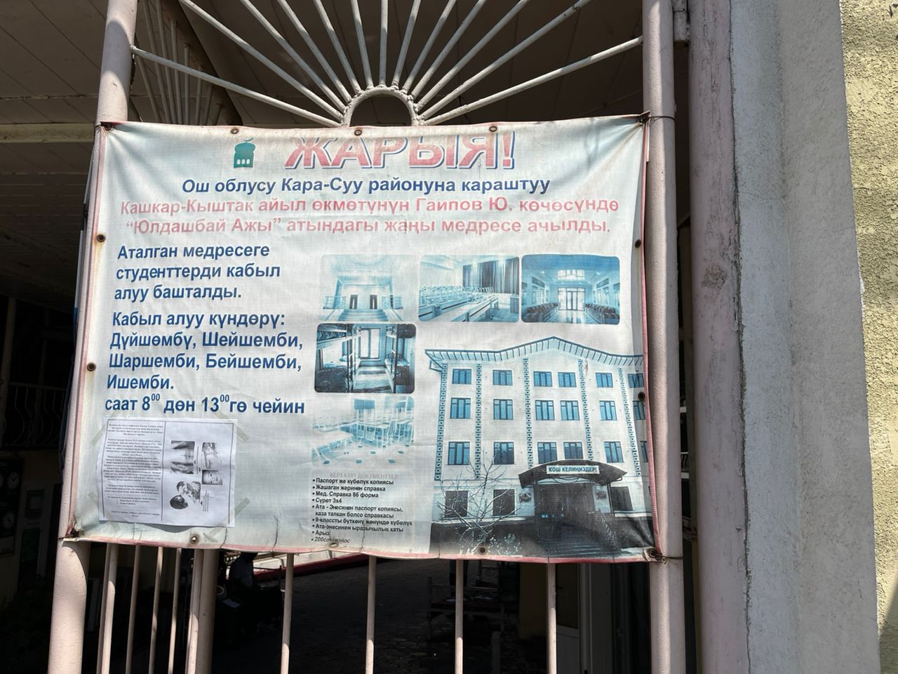 Маалыматка ылайык, “Диний чөйрөдөгү мамлекеттик саясаттын Концепциясын” ишке ашыруу боюнча жүргүзүлүп жаткан иш-чаралардын алкагында диний экстремизм идеологиясынын жана салттуу эмес диний агымдардын жайылышына каршы туруу, ошондой эле Ош облусунда диний кырдаалды жакшыртуу максатында ушул жылдын 20-июлунан тартып УКМК, ИИМ, ДИМКнын, Өзгөчө кырдаалдар министрлигинин, Саламаттыкты сактоо министрлигинин, президенттин Ош облусундагы өкүлчүлүгүнүн өкүлдөрүнөн, “Кадастр” мамлекеттик мекемеси жана КМДБдан турган ведомстволор аралык жумушчу топ Ош облусунун аймагындагы диний жайлардын ишмердүүлүгүн текшерүүдө.