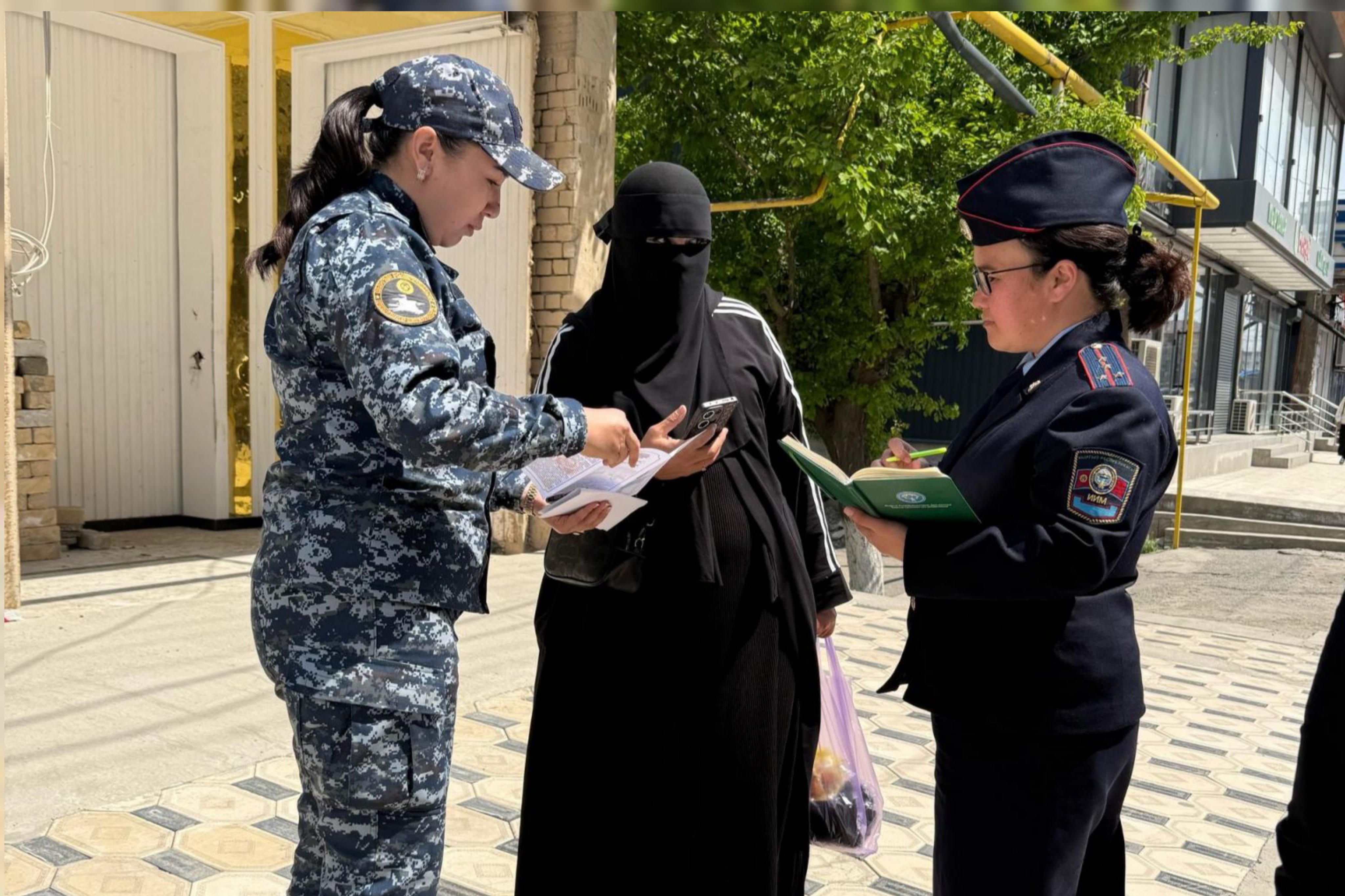 Анын алкагында коомдук жайларда жүзүн толугу менен жаап жүргөн 300гө жакын адам аныкталып, мыйзамдын беренелери жазылган китепчелер таратылып, эскертүүлөр берилди.