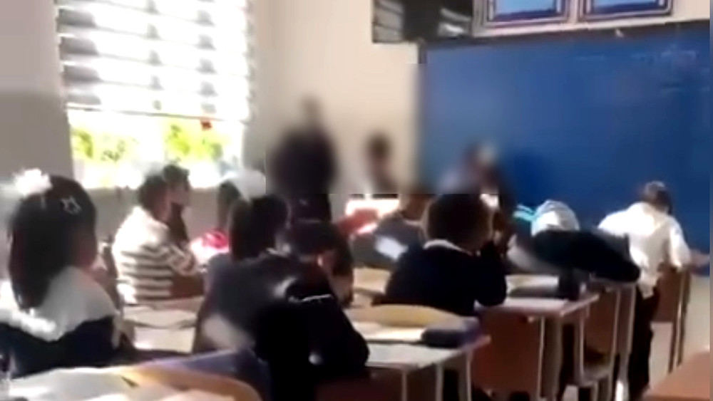 Социалдык тармактарда мугалимдин окуучуга кол көтөргөн видеосу тараган. Билим берүү министрлиги бул окуя боюнча комментарий берди.