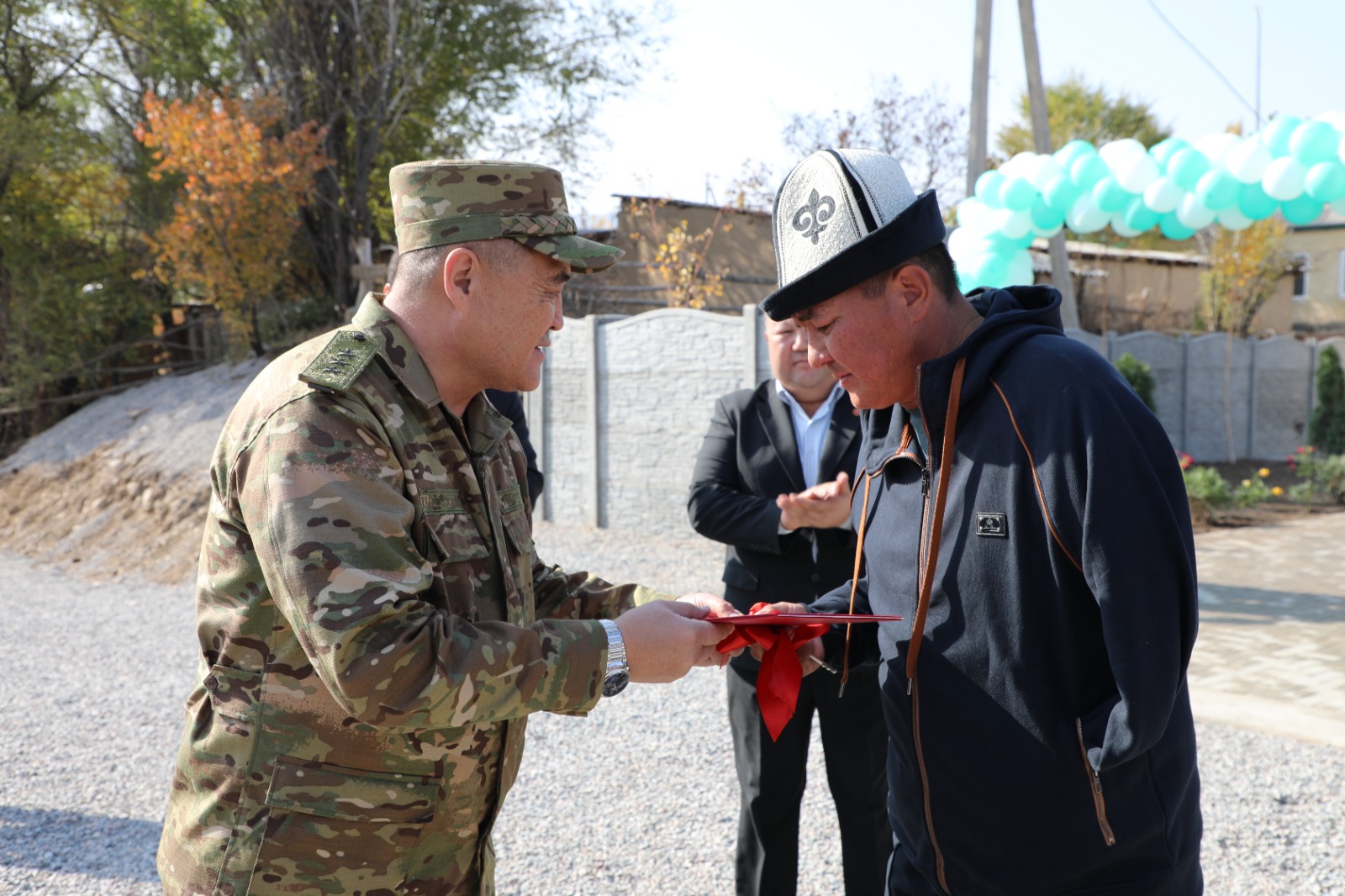 Бүгүн, 18-октябрда УКМК төрагасы Камчыбек Ташиев Чүй облусунун Кемин районунун Кайыңды айылынын 42 жаштагы тургуну Мирбек Кадыралиевге 3 бөлмөлүү жер тамдын ачкычын тапшырды. Бул тууралуу УКМКдан билдиришти.