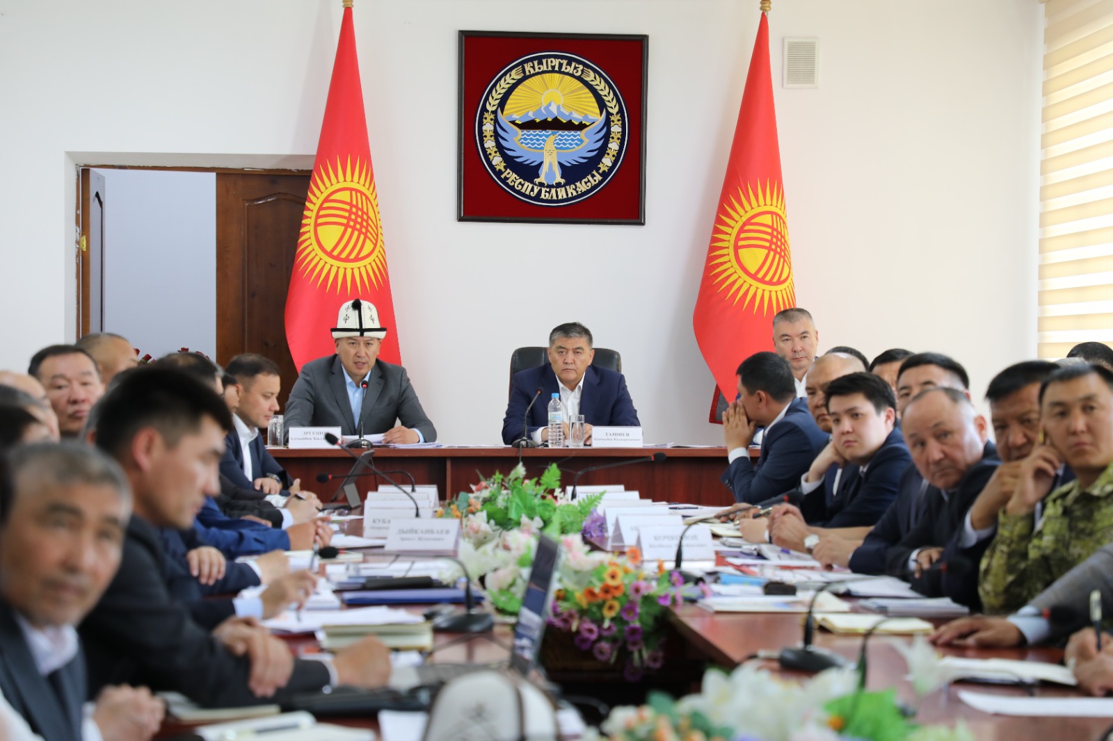 Азыркы тапта жергиликтүү бийлик өкүлдөрү менен жыйын өтүп баштады. Камчыбек Ташиев алардын аткарган иштери тууралуу отчетун угууда.