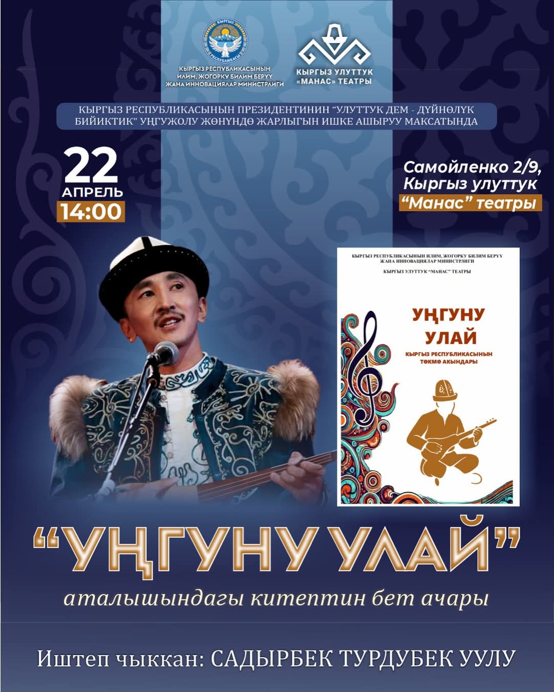 Кыргыз Республикасынын Президентинин “Улуттук дем – дүйнөлүк бийиктик” уңгужолу жөнүндө Жарлыгын ишке ашыруу максатында 22-апрелинде Бишкек шаарында “Уңгуну улай” аталышындагы китептин расмий бет ачары өтөт.