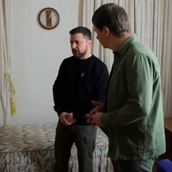 Украинанын президенти Владимир Зеленский журналистке президенттин иш бөлмөсүндөгү өзү жашап жаткан бөлмөнү көрсөттү. Анын айтымында, ал согуш башталгандан бери ошол жерде жашап жатат. Украиналык телеалпаруучу Дмитрий Комаровдун "Год" документалдык долбоорунда бул кадрлар көргөзүлдү.