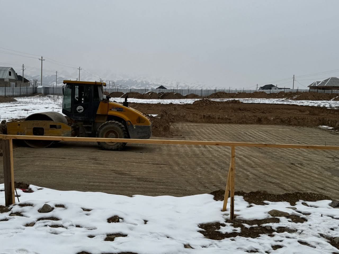 Текшерүү учурунда жер кыртышын катмарлап таптап бекемдөө иштери аяктап, учурда тегиздөө процесстери жүрүп жаткандыгы аныкталды. Бекитилген иш өндүрүшүнүн графигине ылайык, бетон иштери 2026-жылдын январь айында башталышы керек болчу. Бүгүнкү күнгө карата подряддык уюм тарабынан бетон куюу иштери башталган эмес, бул белгиленген мөөнөттөрдөн олуттуу түрдө артта калууну шарттайт.