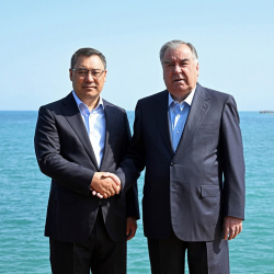 Президент Садыр Жапаров бүгүн, 29-июлда Тажикстандын президенти Эмомали Рахмон менен Ысык-Көл облусунун Чолпон-Ата шаарында жолугушту.