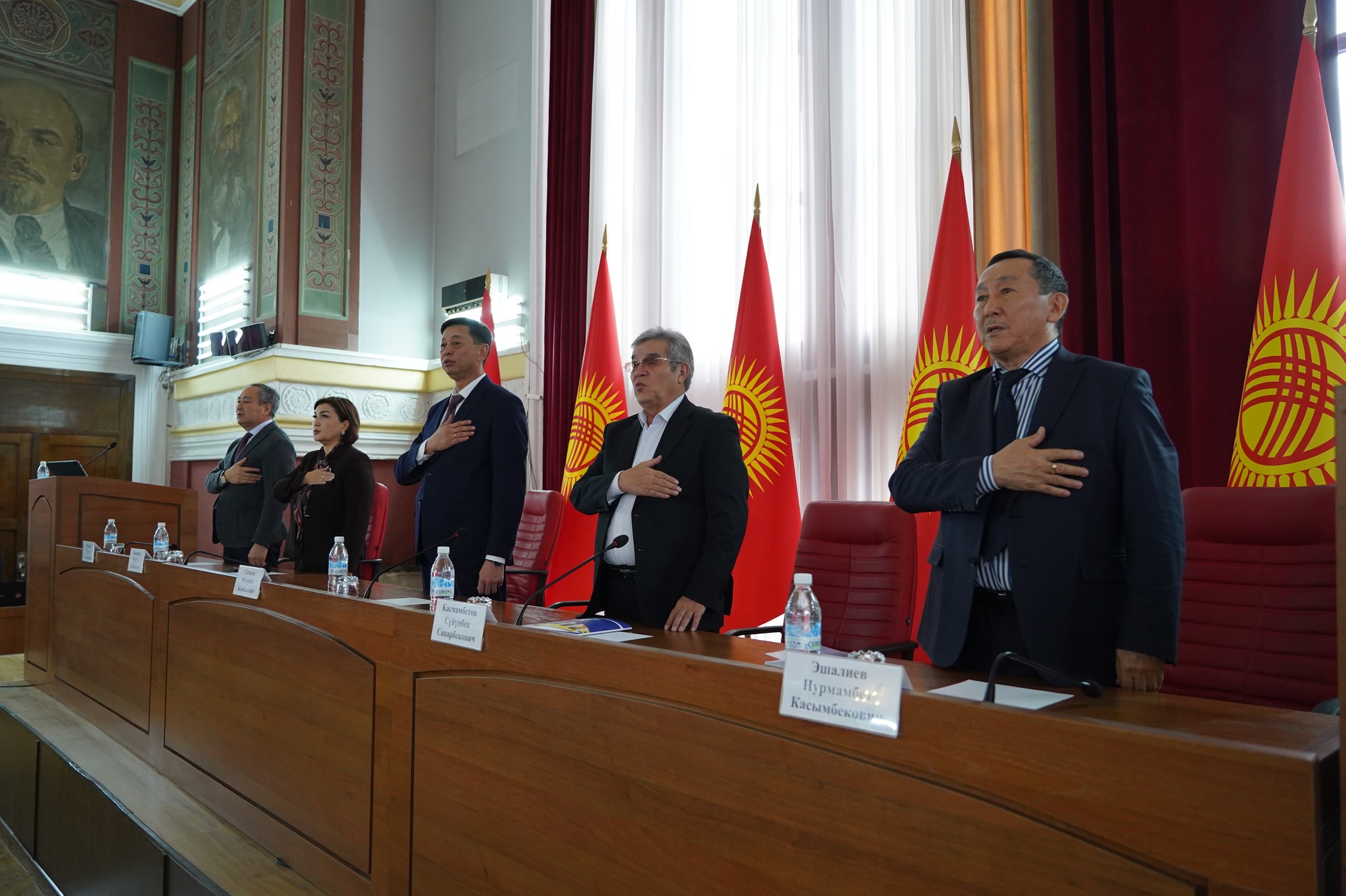 Иш чараны ачкан төрага өз сөзүндө Сүйүнбек Касмамбетовдун «Улуттук дем – дүйнөлүк бийиктик» уңгужолунун идеялык концепциясын түзүүдөгү эмгегин жогору баалап, улуттук баалуулуктарды, тарыхый мурасты жана руханий дөөлөттөрдү коомго жайылтуудагы анын орду өзгөчө экенин белгиледи.