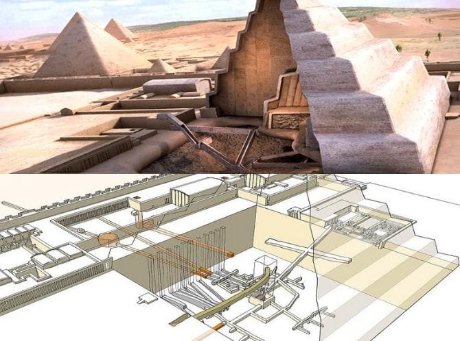 Пирамиданын астында 3 чакырымга созулган туннелдер жана камералар системасы бар. Бул лабиринт эмне максатта курулганы бүгүнкү күнгө чейин так аныкталган эмес. Айрымдар аны падышанын үй-бүлөсү үчүн некрополь (байыркы замандарда колдонулган чоң көрүстөндөр комплекси, башкача айтканда, өлгөндөр шаары) десе, башкалар желдетүү же ырым-жырымдык максатта колдонулган деп болжолдошот.