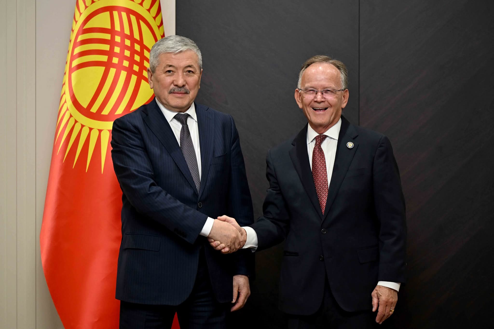 Председатель Кабинета Министров-Руководитель Администрации Президента Кыргызской Республики Адылбек Касымалиев встретился с делегацией США во главе с Председателем Сената штата Юта Стюартом Адамсом.