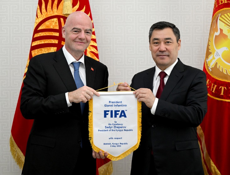 Президент Кыргызстана Садыр Жапаров 5 мая принял президента Международной федерации футбола (ФИФА) Джанни Инфантино, прибывшего накануне в Бишкек. Как сообщила пресс-служба президента, обсуждены вопросы развития кыргызского футбола, а также улучшение футбольной инфраструктуры в Кыргызстане.
